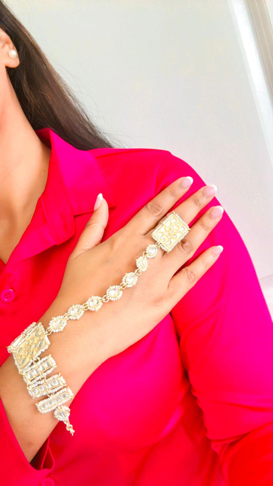 Exquisite Hand Harness Finger Chain Bracelet with Kundan Stones – Traditional Bridal Jewelry for Women