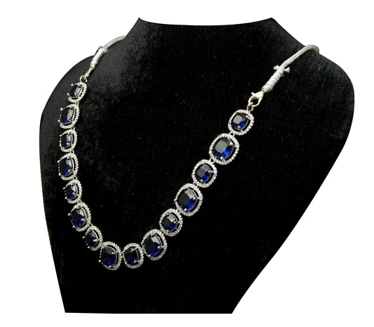 Elegant Sapphire and Diamond Simulant Necklace and Earrings Set