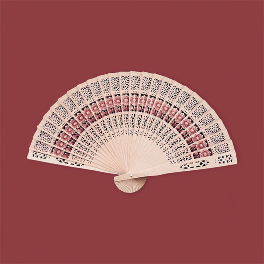 Elegant Wooden Hand Fan with Floral Carving – Vintage Folding Fan for Weddings & Events