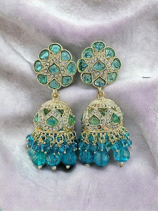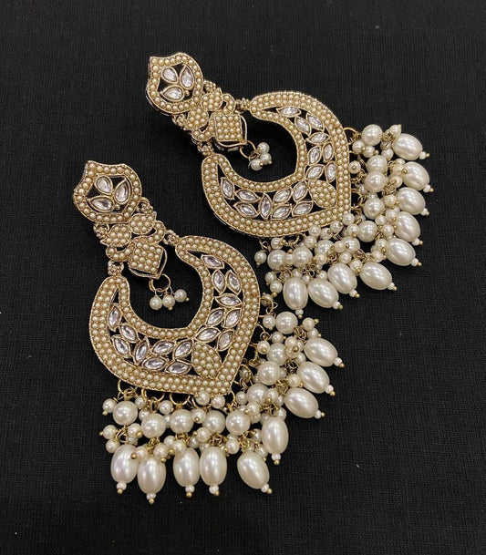 Chandbali Earrings with Beads and Pearl Detailing – Traditional Ethnic Bridal Jewelry
