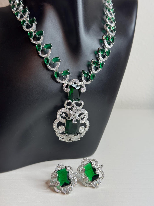 Elegant Green Crystal Necklace and Earring Set – Luxurious Jewelry for Women Perfect for Weddings, Parties, and Special Occasions